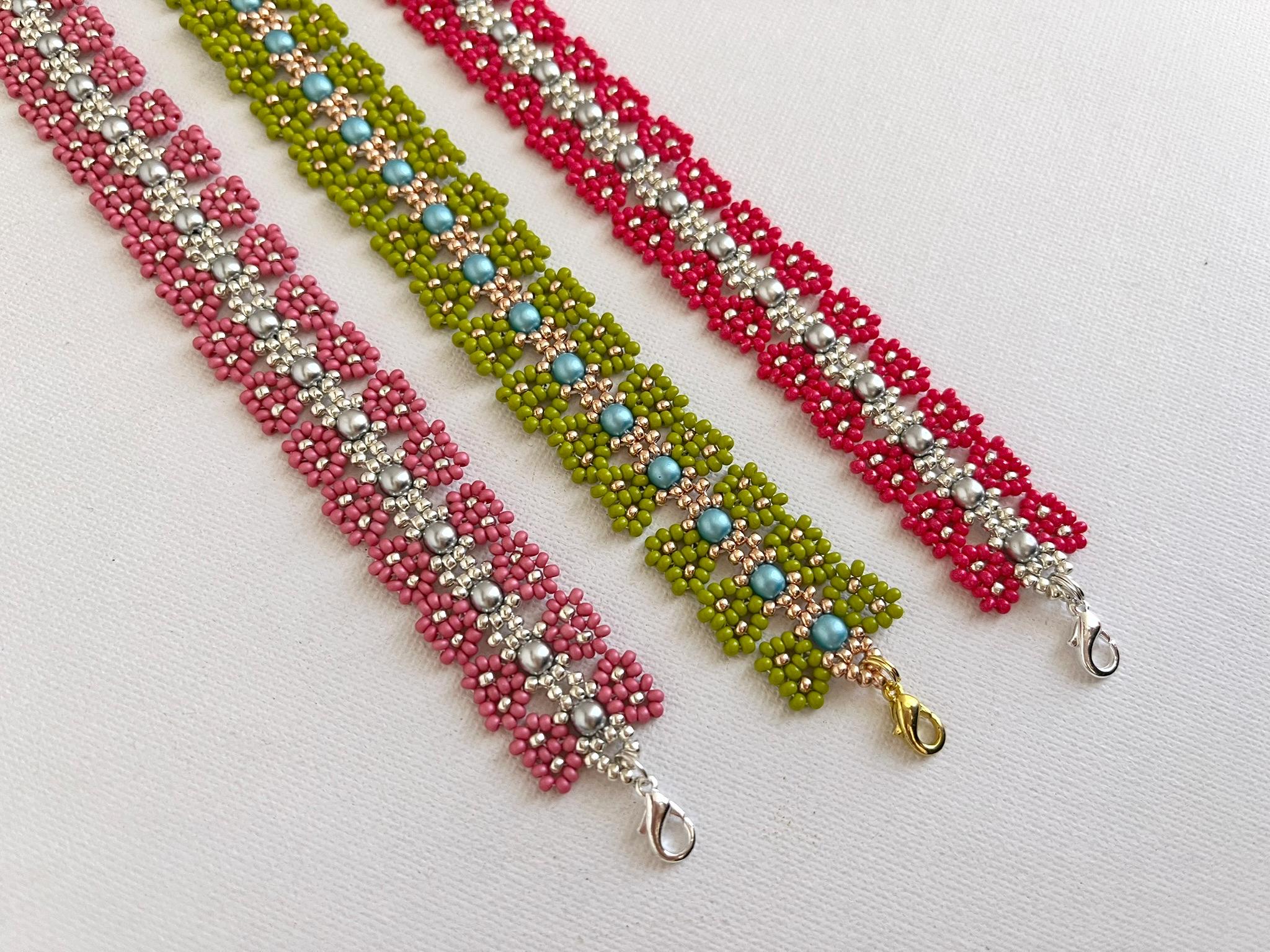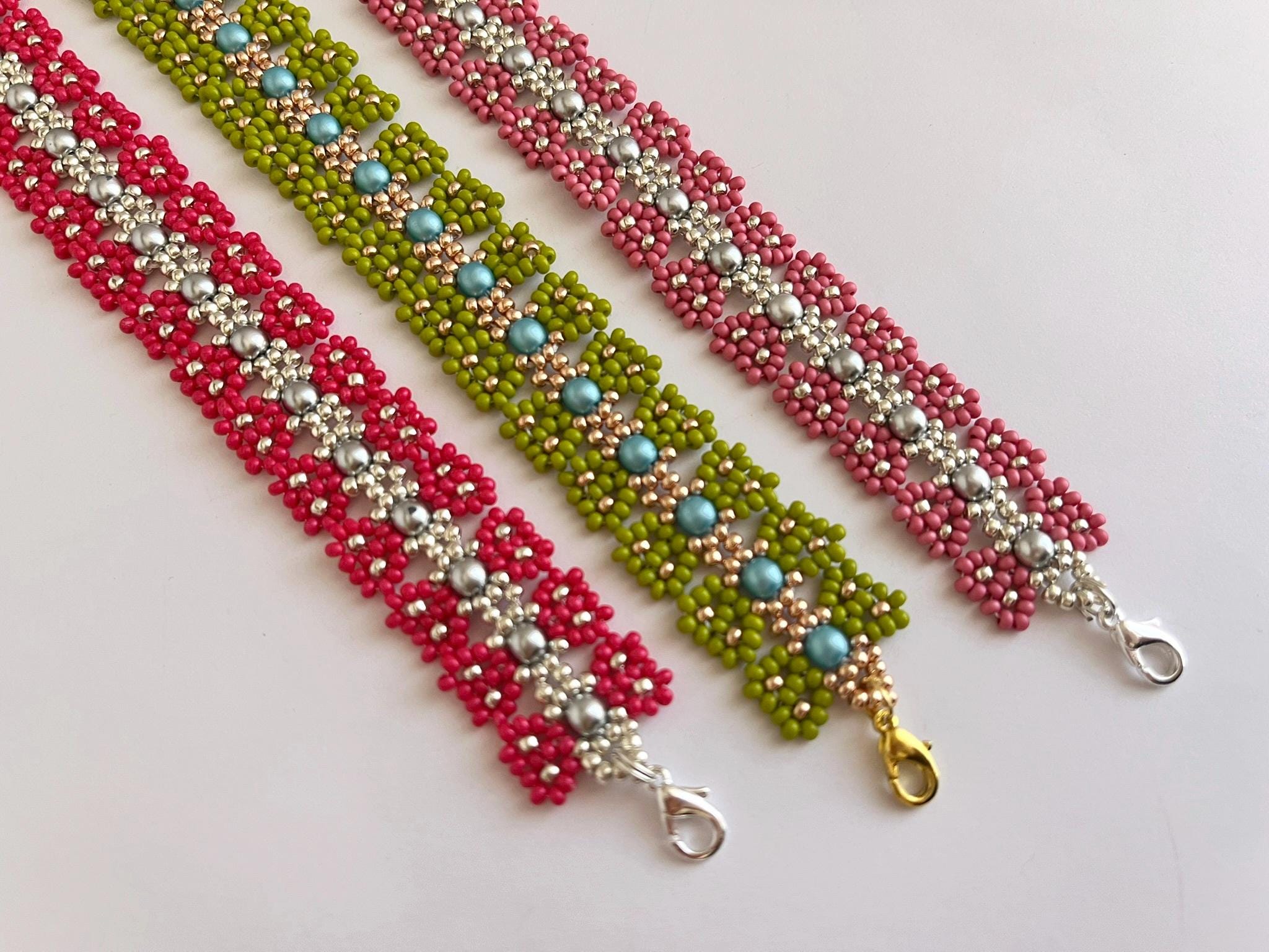 The tutorial includes instructions for creating this bracelet in 2 versions, accompanied by detailed drawings. The tutorial with detailed textual description is 5 pages long.