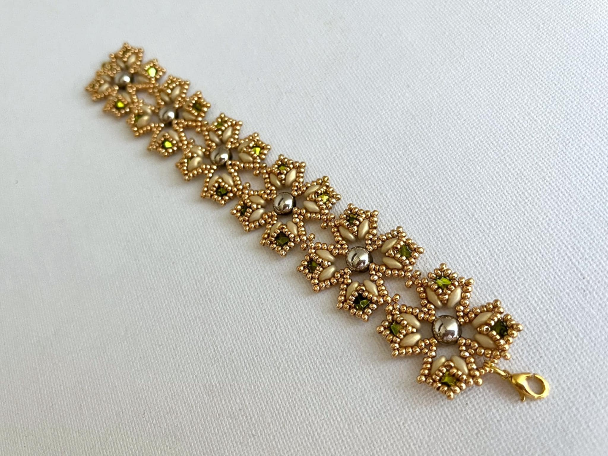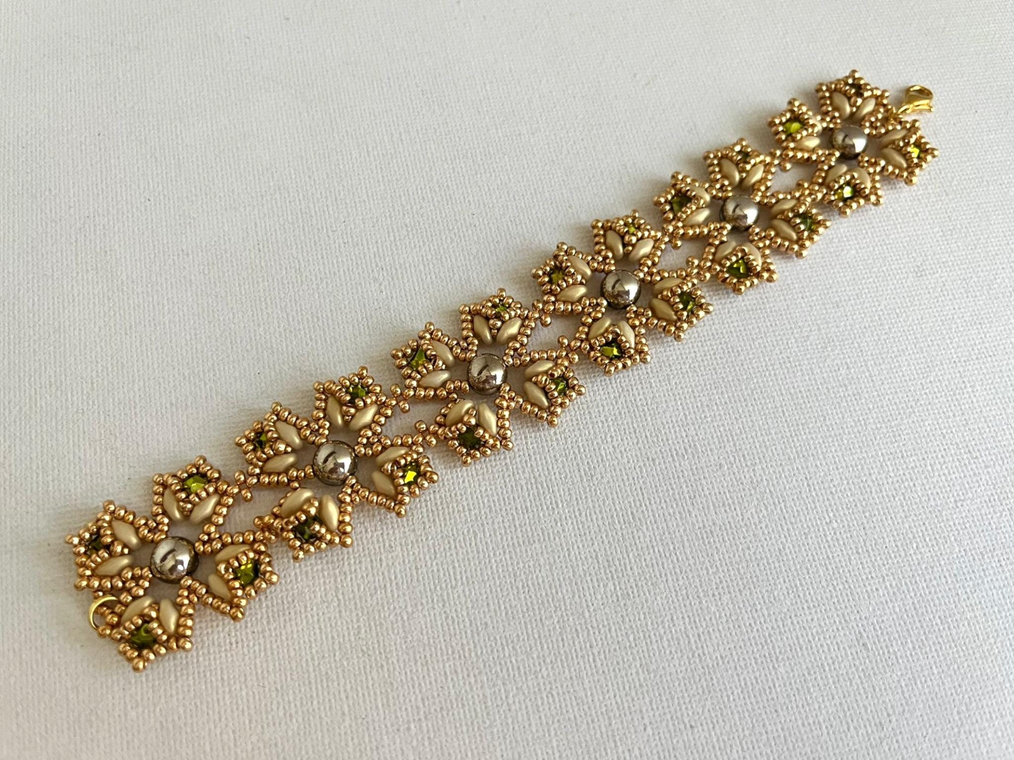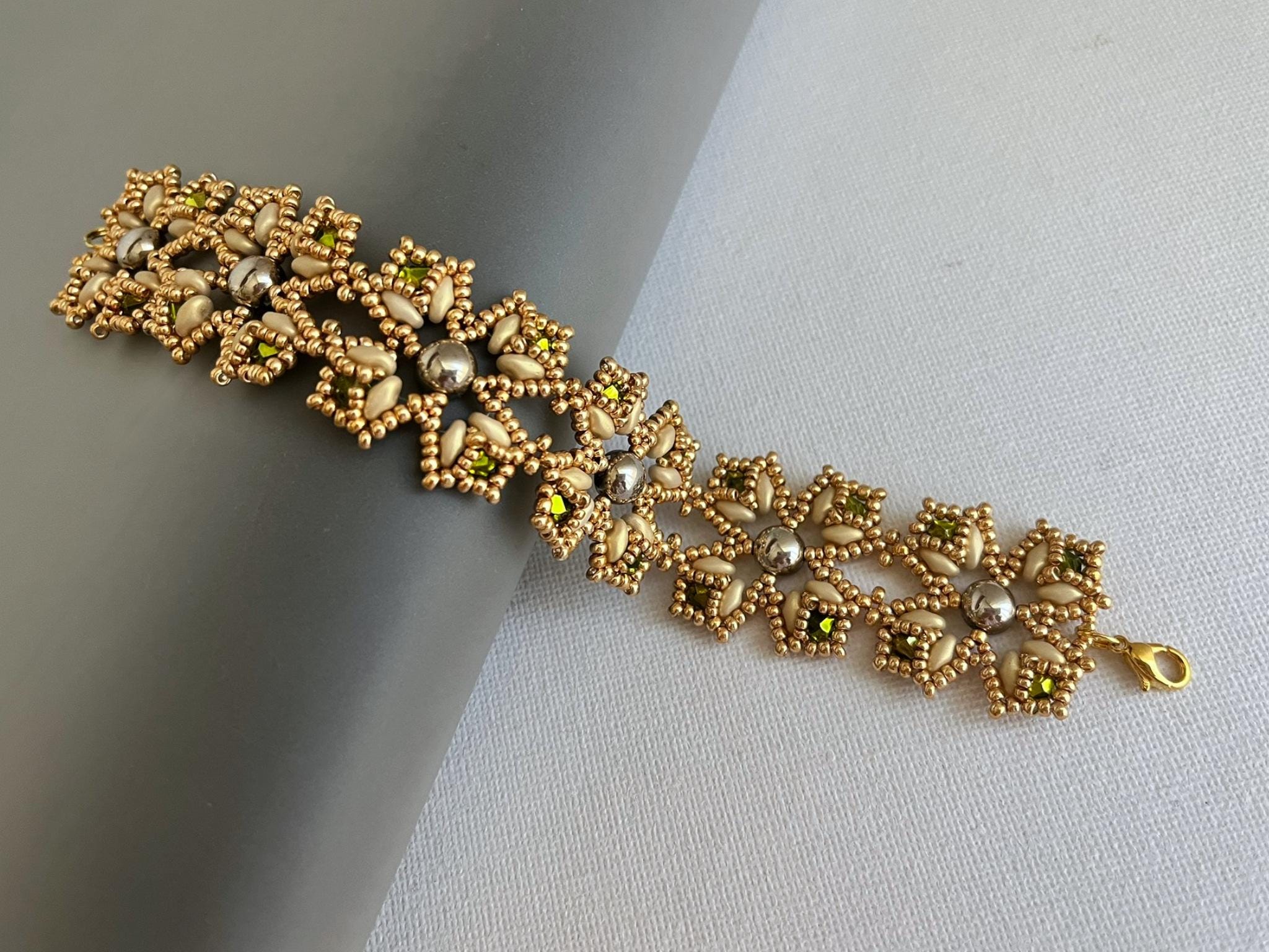 The tutorial includes instructions for creating this bracelet, accompanied by detailed drawings. The tutorial with detailed textual description is 4 pages long.