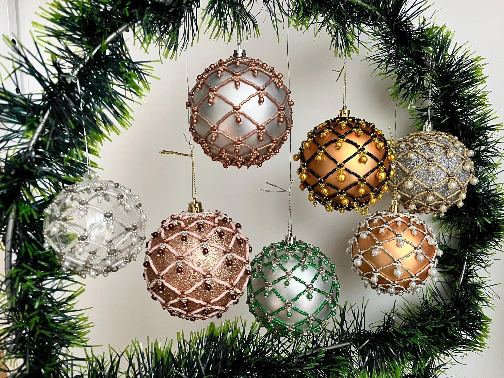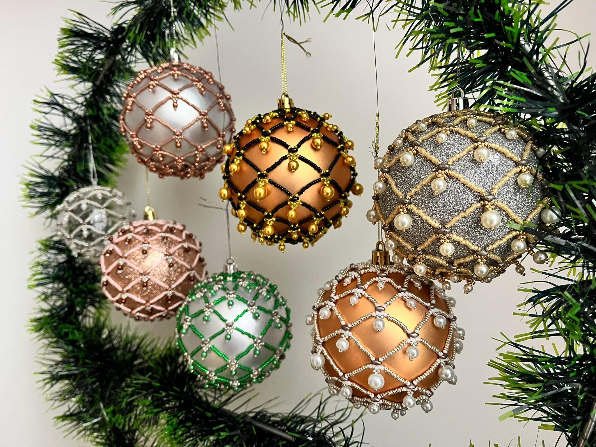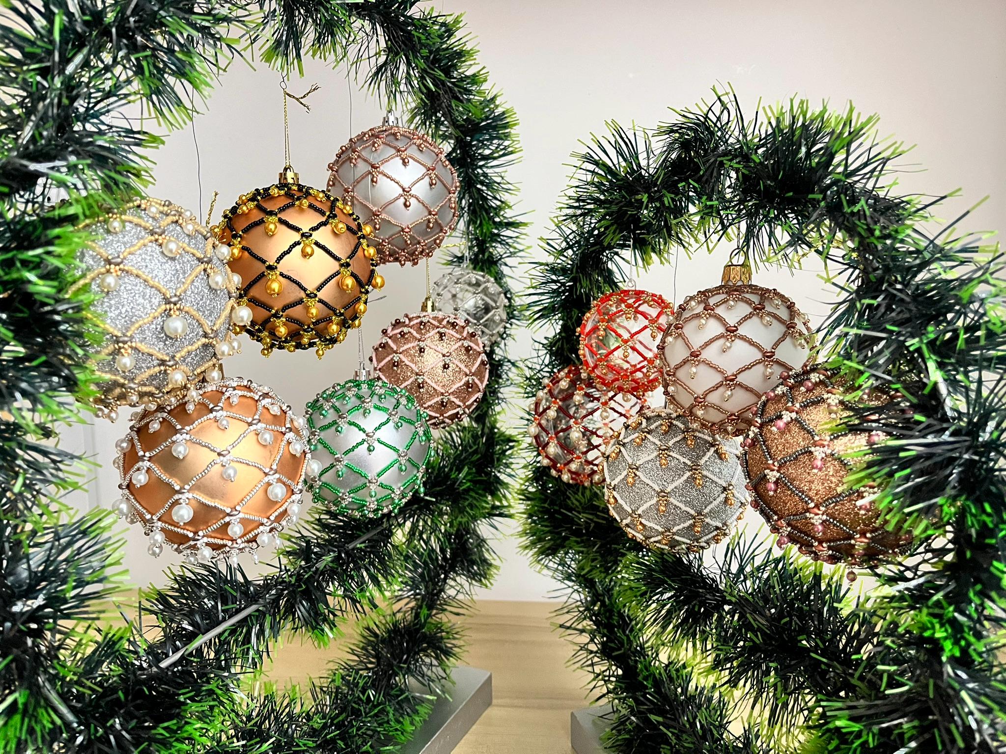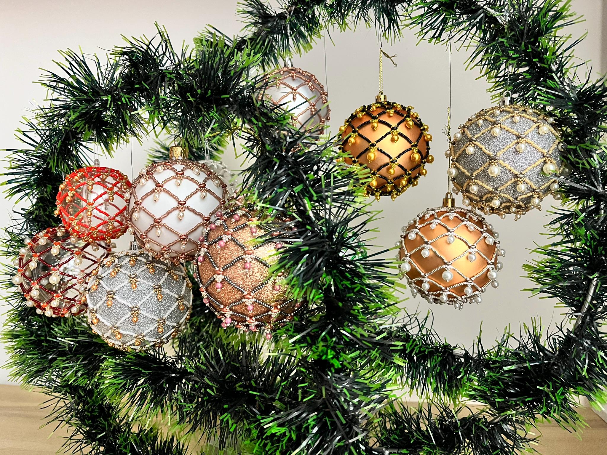 The tutorial includes instructions for creating this XMas OrbNet (decoration), accompanied by detailed drawings. The tutorial with detailed textual description is 9 pages long.