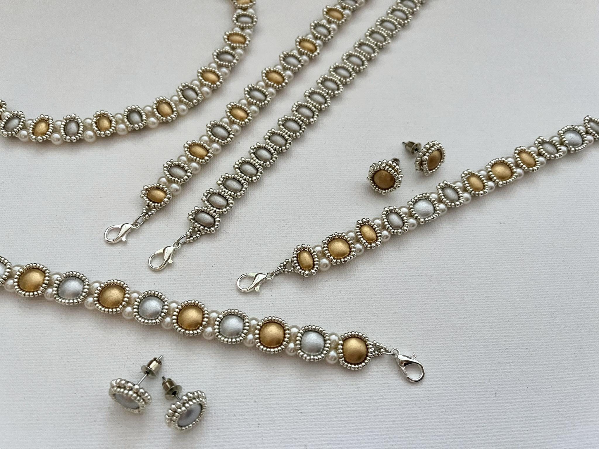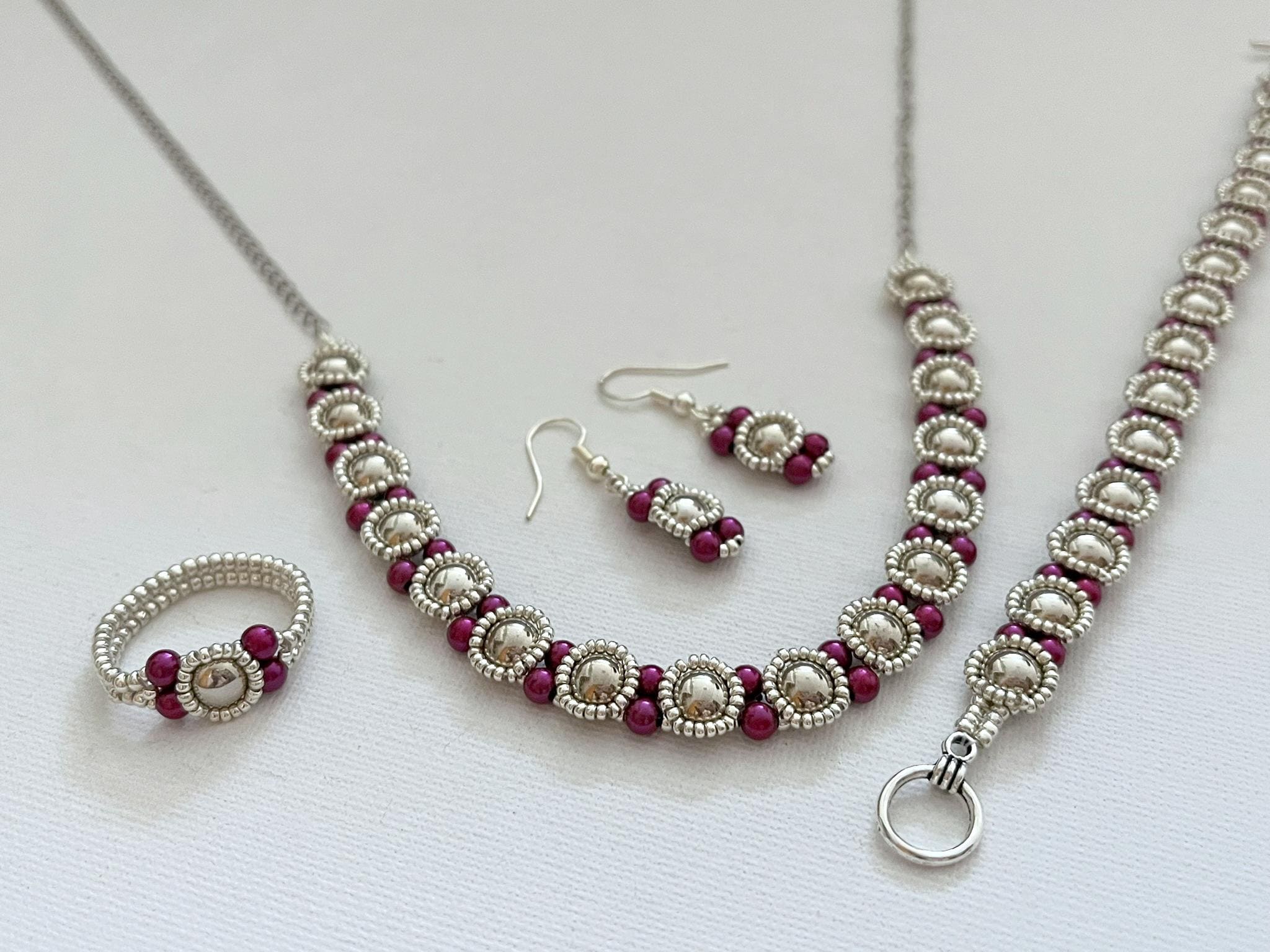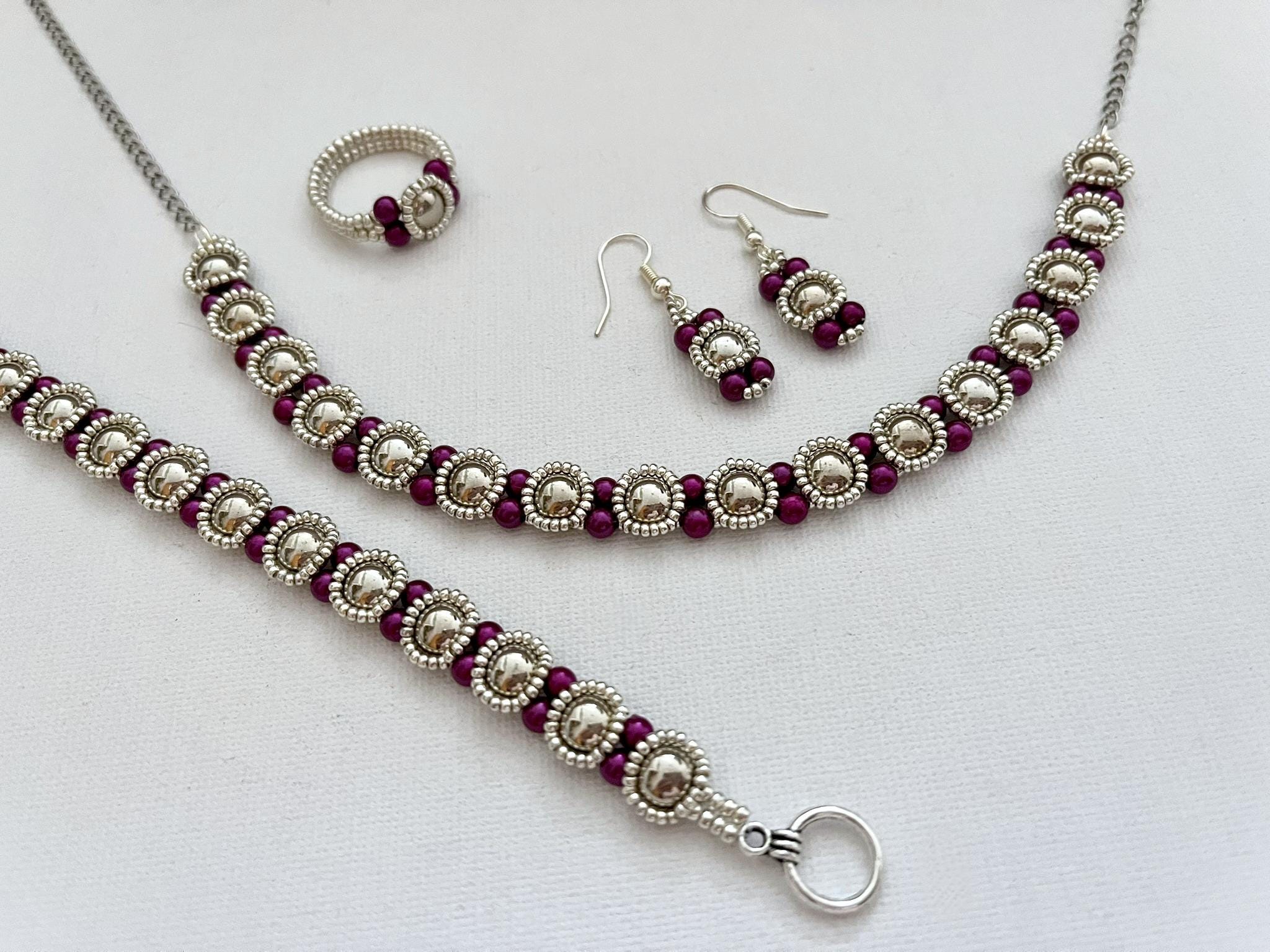 The tutorial includes instructions for creating this set (necklace, bracelet, ring, earrings), accompanied by detailed drawings. The tutorial with detailed textual description is 8 pages long.